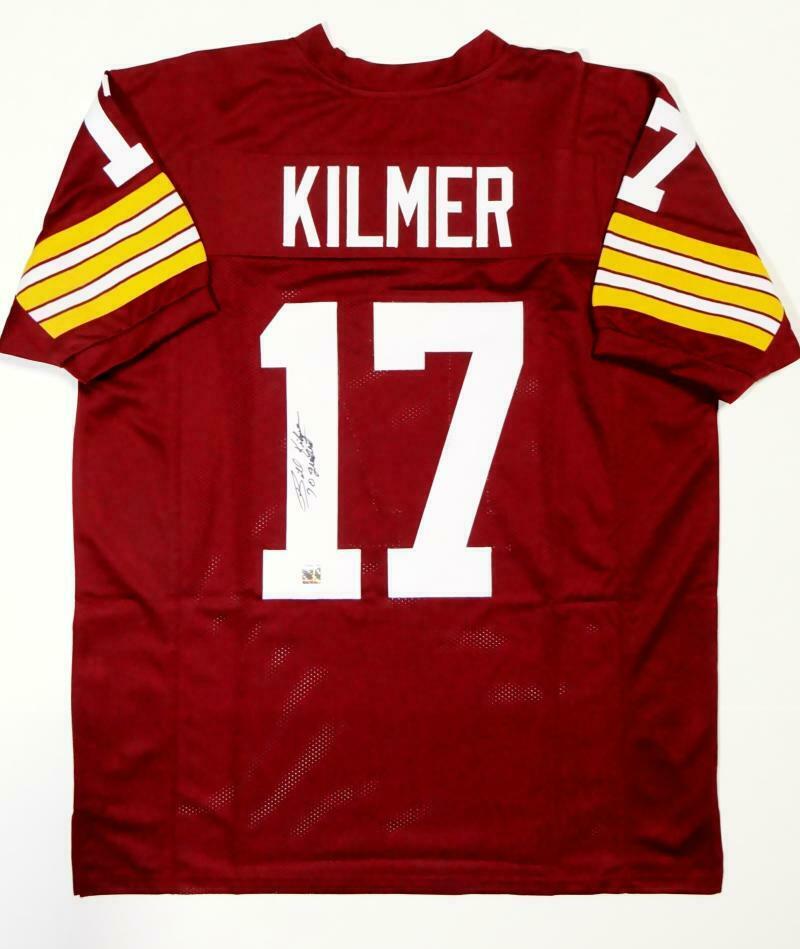 Billy Kilmer Autographed Maroon Pro Style Jersey w/ Insc - Jersey Source Auth *1 THIS IS NOT AN NFL JERSEY. THIS HAS NO TAGS, NO LOGOS, NO EMBLEMS. This is a hand autographed Jersey of Billy Kilmer. This is Custom Made (non name brand) Authentic Style (stitched letters and numbers) Jersey. This item has a James Spence Witness Protection Authentication, which comes with a JSA numbered sticker and a matching Certificate of Authenticity. You can view this item on the SpenceLOA website and it shows when and where the item was signed. It was signed either at a public autograph appearance or a private signing. This is a stock photo of the item. Although you may not receive this exact item, the item you receive is virtually identical and brand new in great shape. Jersey size is XL.