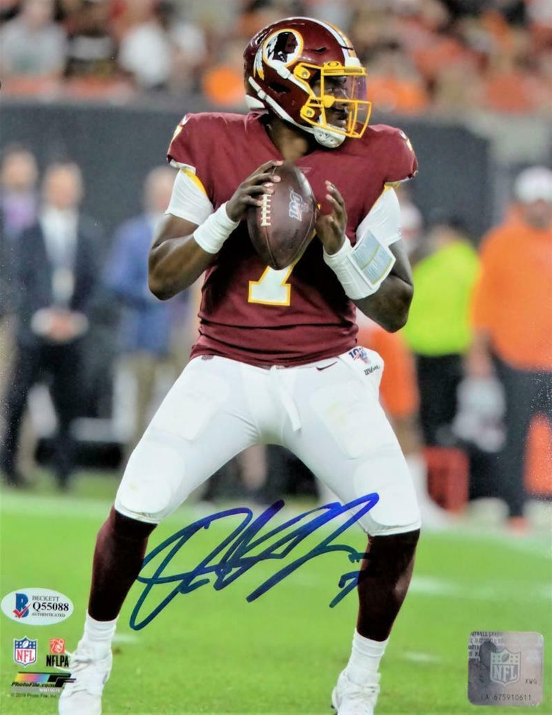 Dwayne Haskins Autographed Washington Redskins 8x10 PF With Ball - Beckett Auth *Blue This is a hand autographed 8x10 Photo File Photo of Dwayne Haskins of the Washington Redskins. This item has a Beckett Authentication, which comes with a Beckett numbered and a matching Certificate of Authenticity. You can view this item on the Beckett website and it shows when and where the item was signed. It was signed either at a public autograph appearance or a private signing. This is a stock photo of the item. Although you may not receive this exact item, the item you receive is virtually identical and brand new in great shape.