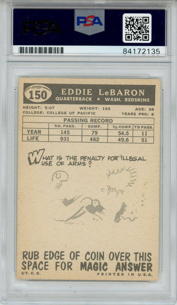 Eddie LeBaron Autographed 1959 Topps #150 Trading Card PSA Slab 43627 The number in the listing title is just an inventory sku for our records and is not the authentication number. This is the exact item that you will receive so please see pictures for condition. This is a trading card that was personally autographed by Eddie LeBaron. This has been professionally slabbed by Professional Authentication Services (PSA) and includes a certificate of authenticity from Denver Autographs.