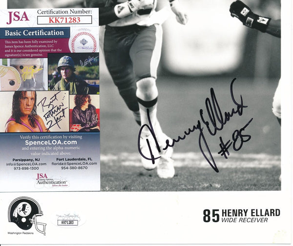 Henry Ellard Autographed 8x10 B/W Team Photo Washington Redskins. This photo is authenticated by JSA and includes their Tamper-proof Sticker and Certificate of Authenticity.