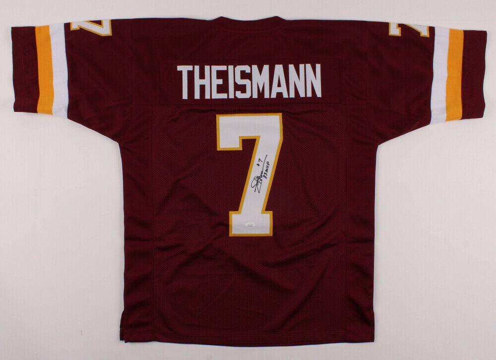 Custom on-field style jersey. Everything is sewn on, size XL. Hand-signed in black felt-tip pen by Joe Theismann. The lot / autograph(s) includes an official James Spence Authentication (JSA) hologram and matching COA for authenticity purposes. The signing of this item was witnessed by JSA.Authentication: JSA COA