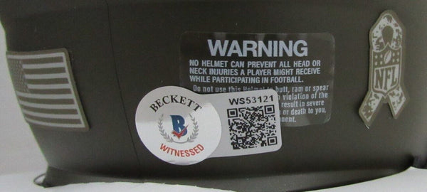 John Riggins HOF Autographed Mini Salute To Service Helmet Washington Redskins. This helmet is authenticated by BAS/Beckett and includes their Tamper-proof Hologram Sticker and Certificate of Authenticity.