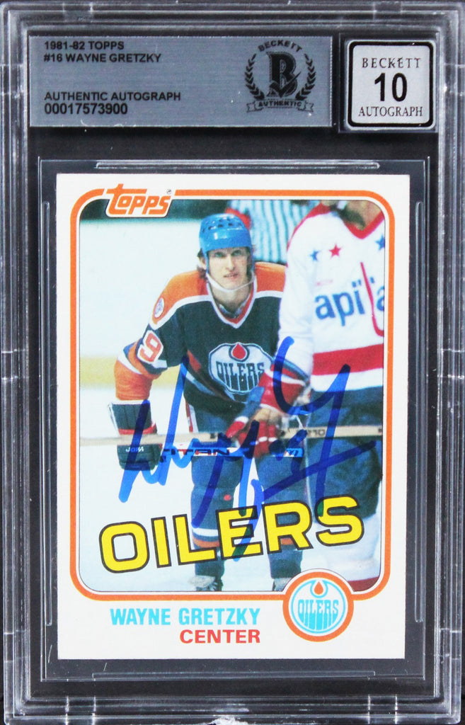 This Autographed Auto Graded Gem Mint 10! 1981 Topps #16 Card has been Personally Signed by Wayne Gretzky of the Edmonton Oilers. This item is 100% Authentic, it comes slabbed and authenticated by Beckett Authentication Services. The authenticity can be verified on Beckett Authentication Services website.