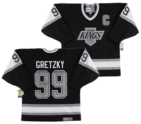 Kings Wayne Gretzky Authentic Signed Black CCM Jersey w Fight Strap BAS #AD64004