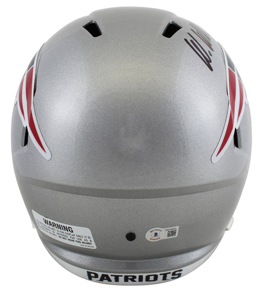 This Autographed Alternate Eclipse Riddell Full Size Speed Rep Helmet has been Personally Signed by Wes Welker of the New England Patriots. This item is 100% Authentic to include a hologram by Beckett Authentication Services. This item will come with the new Beckett Authentication hologram that has a scannable QR code rather than the traditional COA. If you would like to have a COA, you are welcome to reach out to Beckett for a printed certification once you receive your item. This is a BAS Witnessed Protection Program item which means a Beckett Authentication Service representative was present when this item was being signed. We conducted an autograph signing with Wes Welker where multiples of the same item were signed. While the photographs are representative of this item, the size, placement and strength of the signature may vary. Each item is hand signed, therefore, each autograph is unique. This item can be verified through BAS Witnessed.