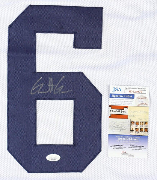 Custom on-field style jersey. Everything sewn on, size XL. Hand-signed by Garrett Greene (West Virginia Mountaineers).The autograph(s) includes an official James Spence Authentication (JSA) "Signature Debut" hologram and COA. "Signature Debut" is the autographed memorabilia equivalent to a rookie card. The JSA definition of a "Signature Debut" is as follows: "Any item that is autographed and received by JSA prior to the last game of the signer's official rookie season.Authentication: JSA COA