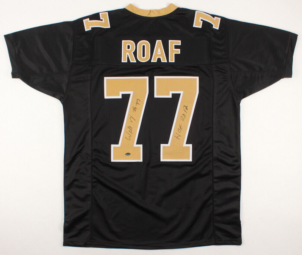 Custom on-field style jersey. Everything is sewn on, size XL. Hand-signed in black felt-tip pen by Willie Roaf (HOF). The lot / autograph(s) includes an official Schwartz Sports Hologram and matching COA for authenticity purposes.Authentication: Schwartz Sports COA