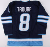 Custom on-ice style jersey. Everything is sewn on, size XL. Hand-signed in black felt-tip pen by Jacob Trouba. The lot / autograph(s) includes an official Beckett Authentication Services serially numbered hologram and matching COA for authenticity purposes.Authentication: Beckett COA