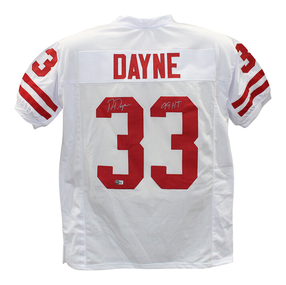 Ron Dayne Autographed/Signed College Style White XL Jersey 99 H Beckett 39336 The number in the listing title is just an inventory sku for our records and is not the authentication number. The item pictured is a stock photo unless otherwise noted. This is a custom college style white XL jersey with sewn on name and numbers that was personally autographed by Ron Dayne with 99 H inscription. Includes a certificate of authenticity from Beckett Authentication Services (BAS) and Denver Autographs.