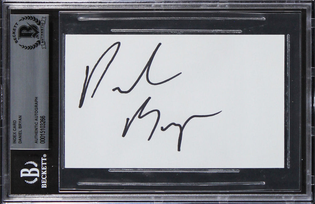 This Autographed 3x5 Index Card has been Personally Signed by Daniel Bryan. This item is 100% Authentic, it comes slabbed and authenticated by Beckett Authentication Services. The authenticity can be verified on Beckett Authentication Services website.