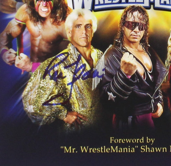 A 30 Years of Wrestlemania Book hand signed by Ric Flair. The item and signature are in excellent conditions. Ric Flair is a professional American Wrestler. AUTHENTICATION: The item is accompanied by a JSA Certificate of Authenticity - JSA Serial Numbered and Databased Hologram