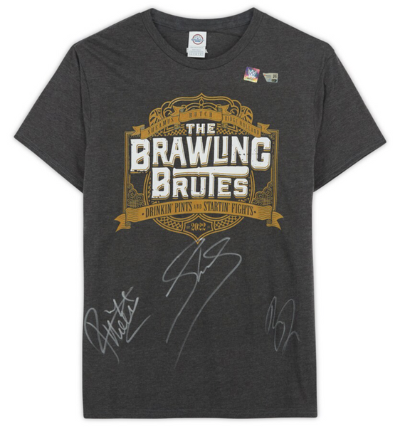 Sheamus, Butch, and Ridge Holland Triple Autographed WWE The Brawling Brutes T-Shirt FanaticsPersonally Autographed by Sheamus, Butch and Ridge Holland Fanatics Authenticated Includes tamper-evident hologram to ensure authenticity Officially licensed This product is guaranteed authentic and includes a tamper-evident Fanatics Hologram.