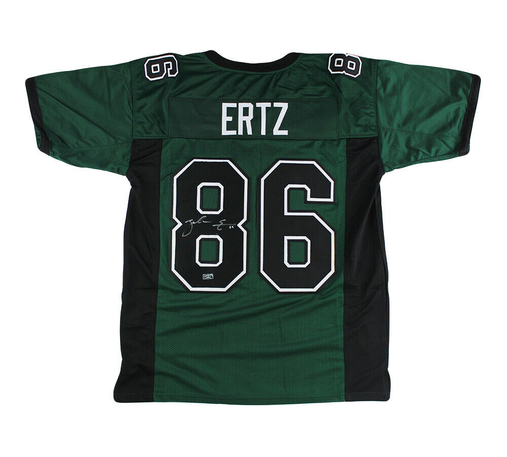 A Philadelphia Custom Green with Black #Jersey hand signed by Zach Ertz. The item and signature are in excellent condition. Zach Ertz is a NFL tight end He was drafted 2nd round in the 2013 NFL Draft by the Philadelphia Eagles. Zach played college football at Stanford. He is a 2x Pro Bowler, and a Super Bowl (LII) Champion. AUTHENTICATION: The item is accompanied by a Zach Ertz Exclusive Certificate of Authenticity - Zach Ertz Exclusive Serial Numbered and Databased Hologram - Picture of Zach from the Signing -