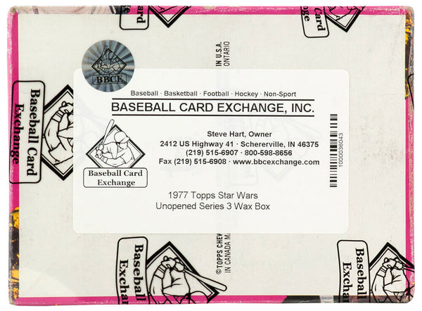 This is for one (1) unopened Wax box of 1977 Topps Star Wars Series 3 trading cards, which has been professionally wrapped and sealed by BBCE, ensuring that the packs inside have not been tampered with. The box contains 36 unopened packs. You will receive the BBCE Wrapped box shown in image.