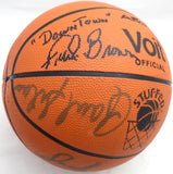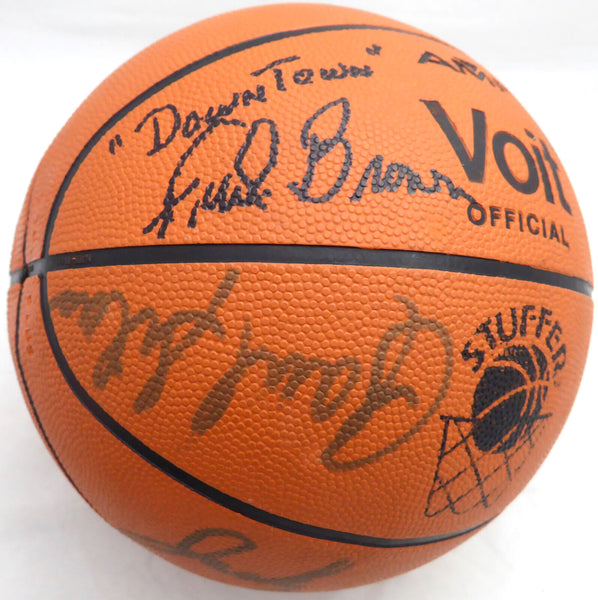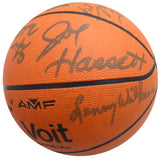 This is a Basketball that has been hand signed by 12 members of the 1978-79 NBA Champions Seattle Supersonics. Signatures include Gus Williams, Jack Sikman, Paul Silas, Lenny Wilkens, Fred Brown, Lonnie Shelton, Tom LaGarde, Dennis Johnson, Dick Snyder, Joe Hassett and Wally Walker.A It has been certified authentic by Beckett Authentication (BAS) and comes with their sticker and matching full page certificate of authenticity.