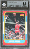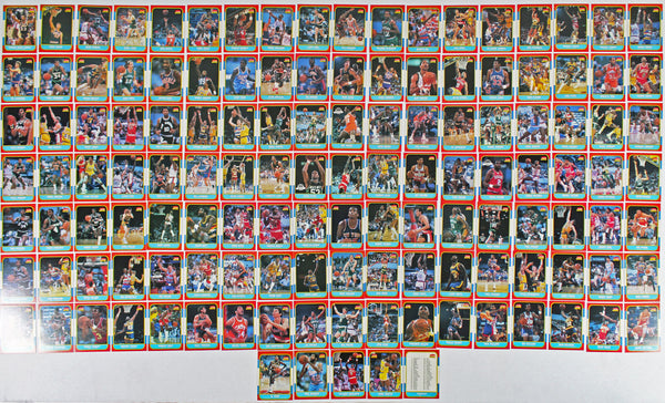 This is a 1986 NBA Fleer Trading Card Base Complete Set that contains a total of 143 cards. The Michael Jordan #57 card is BGS Encapsulated and graded NM-MT 8.5. This card set is 100% guaranteed authentic and comes complete with everything you see. This is the most iconic set of the hobby with rookie cards of Hall of Famers such as Michael Jordan, Charles Barkley, Hakeem Olajuwon, Karl Malone, Patrick Ewing, Isiah Thomas, Dominique Wilkins and legends such as Kareem Abdul Jabbar, Larry Bird, Magic Johnson and many others. Please refer to pictures prior to purchase.