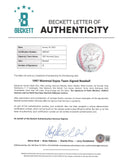 This Autographed Leonard Coleman Onl Baseball has been Personally Signed by Felipe Alou, Mike Lansing, Sherman Obando, Darrin Fletcher, Rheal Cormier, Joe Orsulak, Andy Stankiewicz, F. P. Santangelo, Pete Mackanin, Rick DeHart, Tom Harper, Salomon Torres, Henry Rodriguez, Mark Grudzielanek, Omar Daal, Jeff Juden, Doug Strange and five others. The signatures of Pedro Martinez, Vladimir Guerrero and Lee Smith have been deemed clubhouse versions of the Montreal Expos. This item is 100% Authentic to include a Certificate of Authenticity (COA) / hologram by Beckett Authentication Services. The authenticity can be verified on Beckett Authentication Services website.