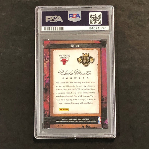 2014-15 Court Kings Remarkable Rookies #39 card signed by Nikola Mirotic who notably played for the Chicago Bulls. The autograph of Nikola on this card was authenticated by a team of experts at PSA/DNA Authentication Services (PSA/DNA) and encapsulated so you can rest assured you are purchasing the real deal.