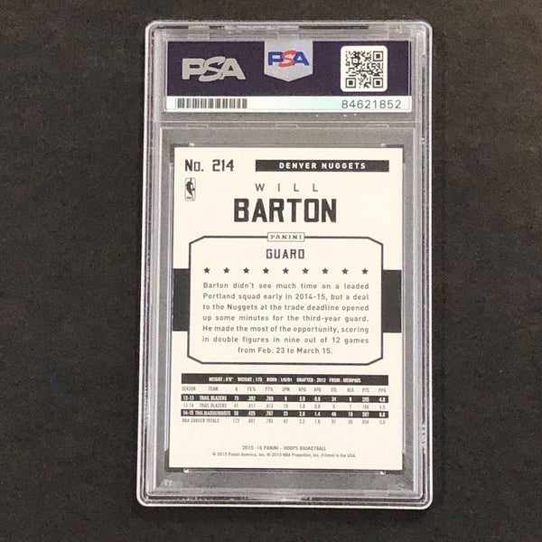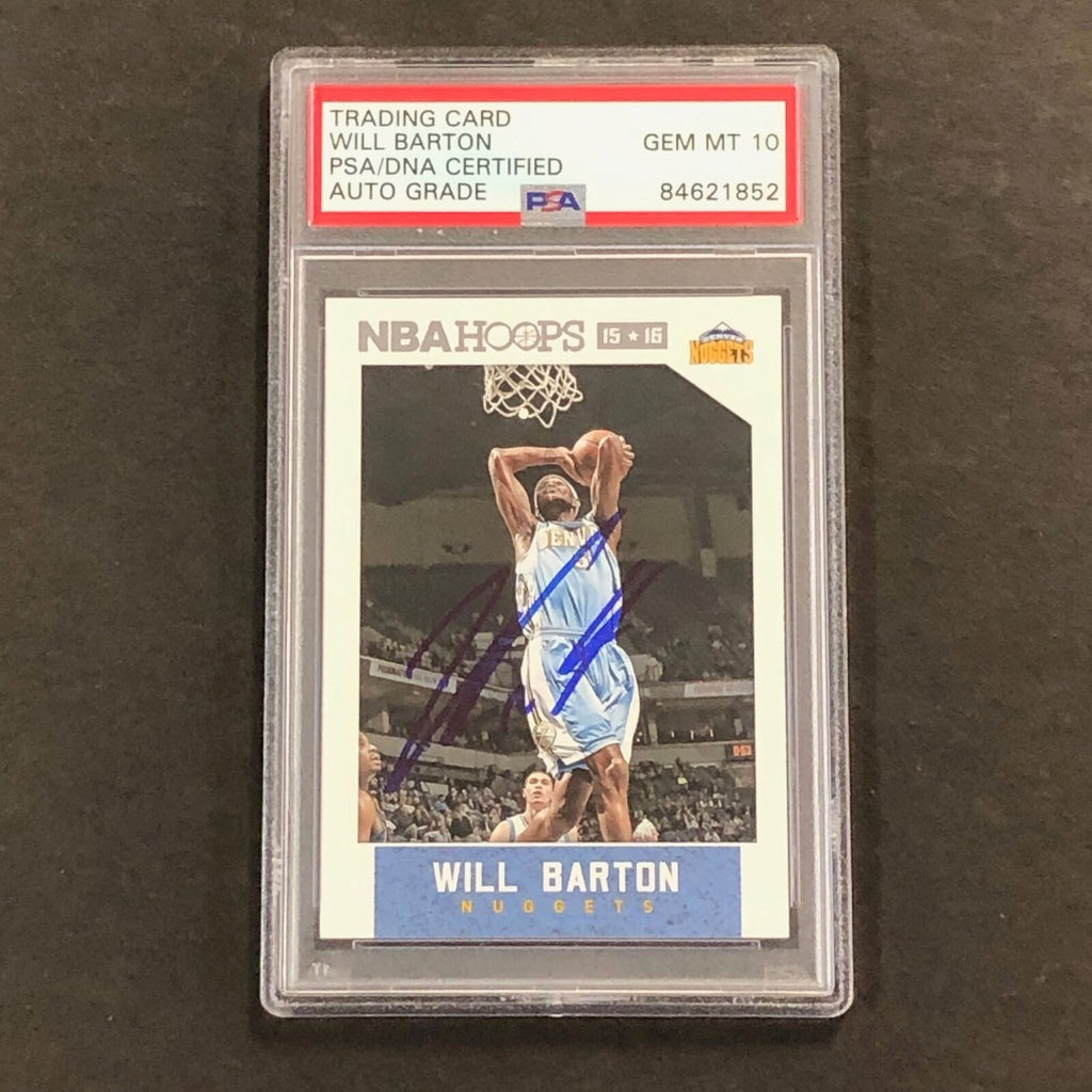 2015-16 NBA Hoops #214 signed Will Barton. The autograph of Will on this card was authenticated by a team of experts at PSA/DNA Authentication Services (PSA/DNA) and encapsulated so you can rest assured you are purchasing the real deal.
