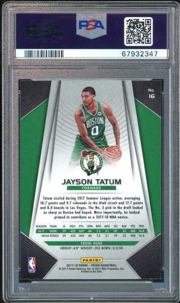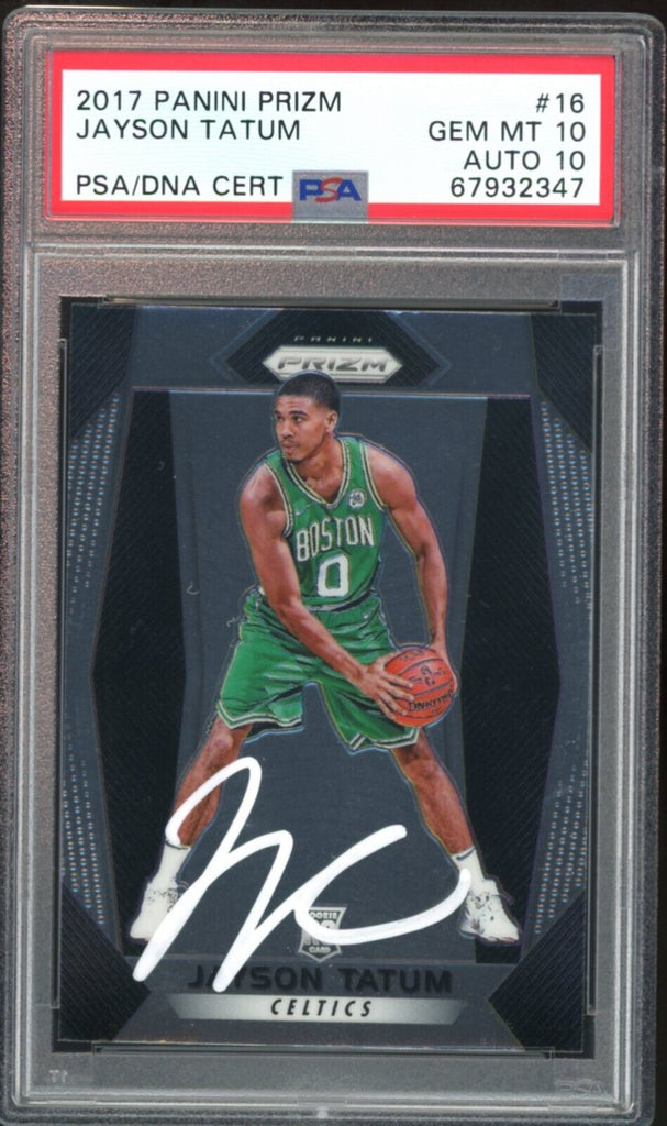 2017 Panini Prizm #16 Jayson Tatum RC On Card White Ink PSA 10/10 Auto GEM MINT