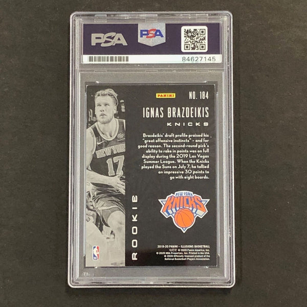 2019-20 Panini Illusions #184 card signed by Ignas Brazdeikis who notably played for the New York Knicks. The autograph of Ignas on this card was authenticated by a team of experts at PSA/DNA Authentication Services (PSA/DNA) and encapsulated so you can rest assured you are purchasing the real deal.