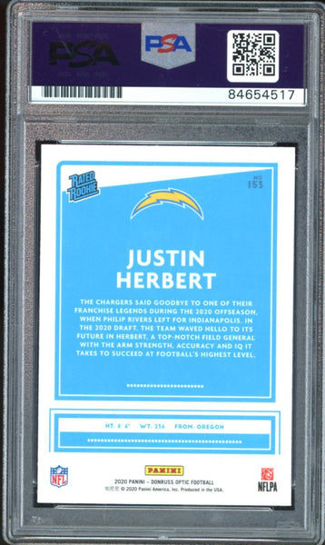 2020 Panini Donruss Optic #153 Justin Herbert RC Rookie PSA/DNA Auto Authentic