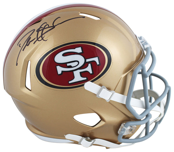 This Autographed Full Size Speed Rep Helmet W/ Uv Mirrored Back Acrylic Display Case has been Personally Signed by Deion Sanders of the San Francisco 49ers. This item is 100% Authentic to include a Certificate of Authenticity (COA) / hologram by Beckett Authentication Services. This is a BAS Witnessed Protection Program item which means a Beckett Authentication Service representative was present when this item was being signed. We conducted an autograph signing with Deion Sanders where multiples of the same item were signed. While the photographs are representative of this item, the size, placement and strength of the signature may vary. Each item is hand signed, therefore, each autograph is unique. This item can be verified through BAS Witnessed.