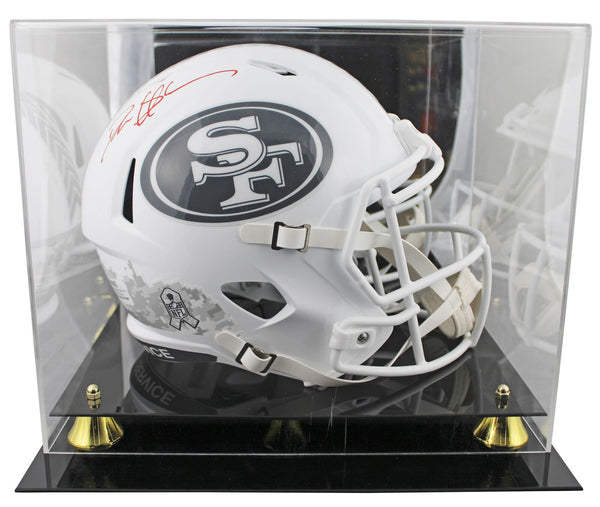 This Autographed Alternate 2024 Salute To Service III Riddell Full Size Speed Rep Helmet W/ Uv Mirrored Back Acrylic Display Case has been Personally Signed by Deion Sanders of the San Francisco 49ers. This item is 100% Authentic to include a hologram by Beckett Authentication Services. This item will come with an affixed Beckett Authentication Services (BAS) authentication sticker, which includes a scannable QR code to verify authenticity. Please note that Beckett no longer provides serial-numbered COA cards, and the attached BAS sticker will serve as the complete authentication for this item. This is a BAS Witnessed Protection Program item which means a Beckett Authentication Service representative was present when this item was being signed. We conducted an autograph signing with Deion Sanders where multiples of the same item were signed. While the photographs are representative of this item, the size, placement and strength of the signature may vary. Each item is hand signed, therefore, each autograph is unique. This item can be verified through BAS Witnessed.