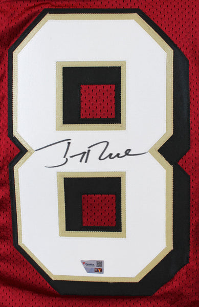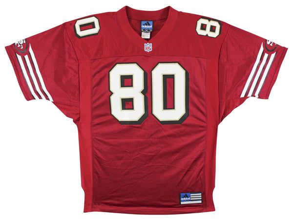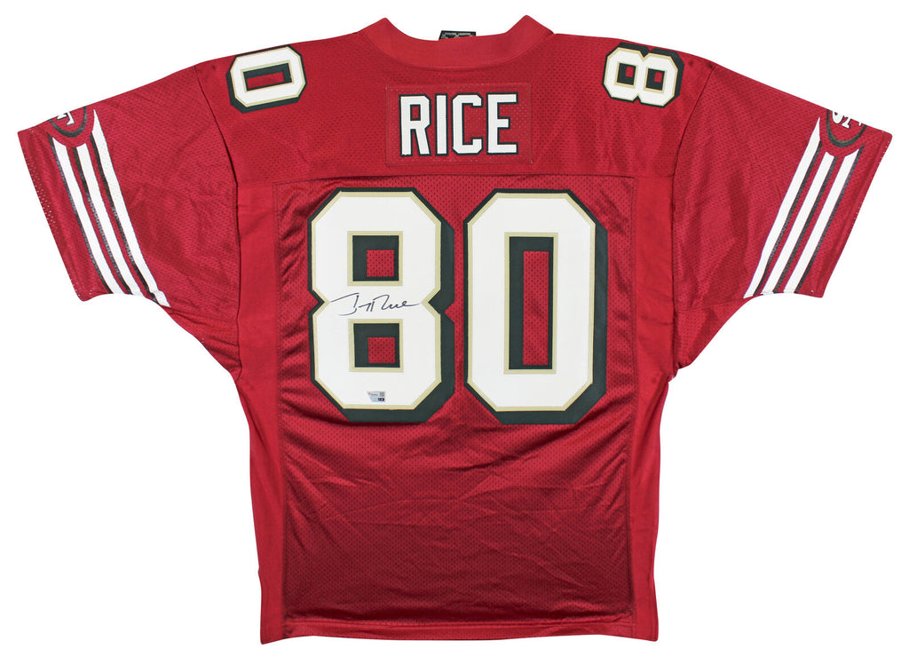 This Autographed w/ Dropshadow Red Adidas Throwback Size 50 Jersey has been Personally Signed by Jerry Rice of the San Francisco 49ers. This item is 100% Authentic to includes a numbered hologram by Fanatics. The authenticity can be verified on Fanatics website.