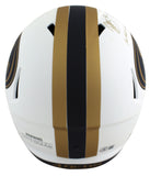 This Autographed Alternate Lunar Riddell Full Size Speed Rep Helmet with the inscription of "Faithful To The Bay" has been Personally Signed by Patrick WIllis of the San Francisco 49ers. This item is 100% Authentic to include a hologram by Beckett Authentication Services. This item will come with the new Beckett Authentication hologram that has a scannable QR code rather than the traditional COA. If you would like to have a COA, you are welcome to reach out to Beckett for a printed certification once you receive your item. This is a BAS Witnessed Protection Program item which means a Beckett Authentication Service representative was present when this item was being signed. This is a stock item. We conducted an autograph signing with Patrick WIllis and we have several of these available. The one you will receive will be of equal quality to the one pictured. This item can be verified through BAS Witnessed.