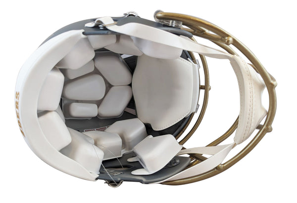This Autographed Alternate Slate Riddell Authentic Full Size Speed Proline Helmet with the inscription of "HOF 24" has been Personally Signed by Patrick Willis of the San Francisco 49ers. This item is 100% Authentic to include a hologram by Beckett Authentication Services. This item will come with an affixed Beckett Authentication Services (BAS) authentication sticker, which includes a scannable QR code to verify authenticity. Please note that Beckett no longer provides serial-numbered COA cards, and the attached BAS sticker will serve as the complete authentication for this item. This is a BAS Witnessed Protection Program item which means a Beckett Authentication Service representative was present when this item was being signed. We conducted an autograph signing with Patrick Willis where multiples of the same item were signed. While the photographs are representative of this item, the size, placement and strength of the signature may vary. Each item is hand signed, therefore, each autograph is unique. This item can be verified through BAS Witnessed.