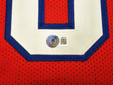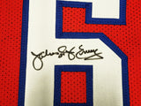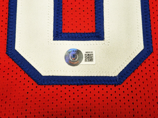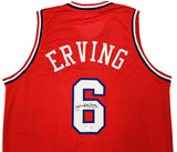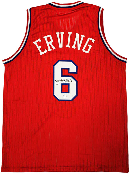 This is a Red Jersey that has been hand signed by Julius "Dr. J" Erving This is a custom jersey with no name brand. The approximate size is XL. It has nice sewn in name and numbers. This item has been witnessed and certified authentic by Beckett Authentication (BAS) and comes with their tamper-proof witness sticker.