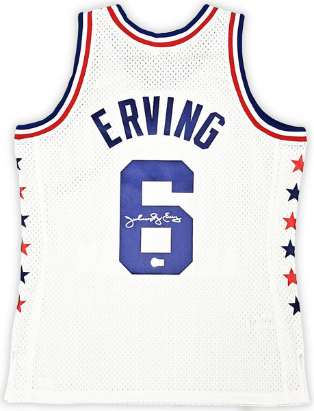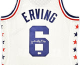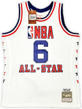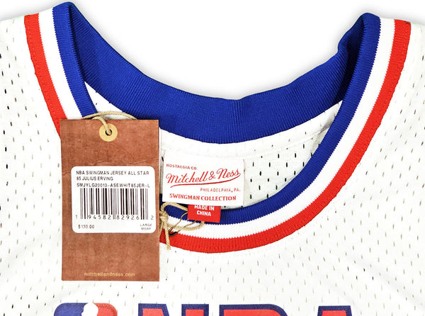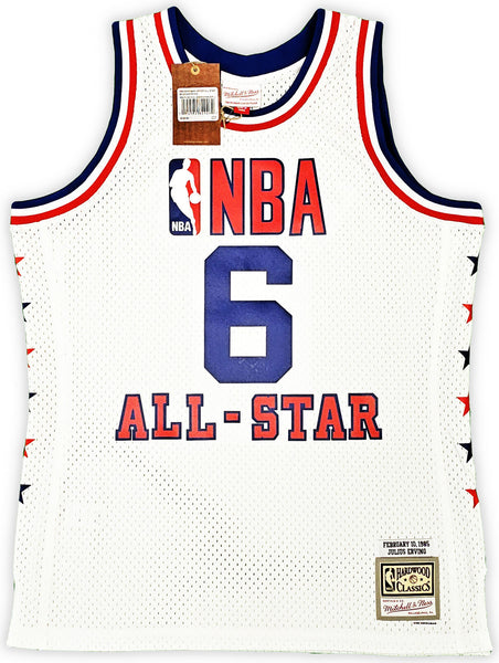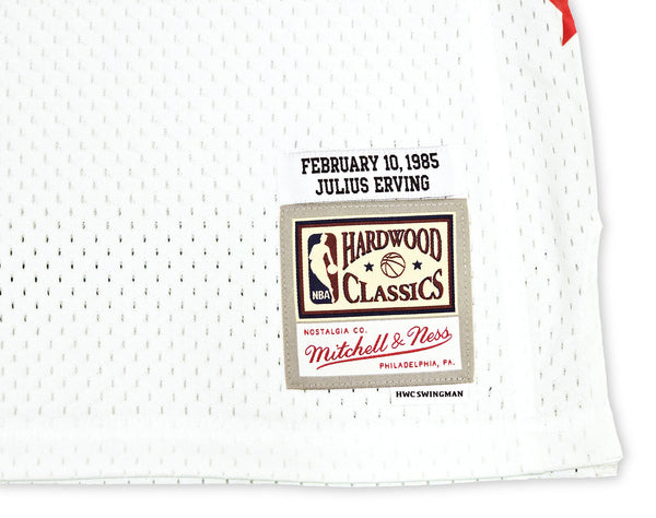 This is a White Authentic Mitchell & Ness Philadelphia 76ers 2-10-1985 HWC Swingman All Star Jersey that has been hand signed by Julius "Dr. J" Erving. This jersey is Size L. This item has been witnessed and certified authentic by Beckett Authentication (BAS) and comes with their tamper-proof witness sticker.