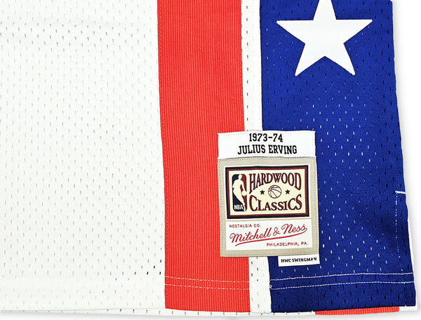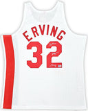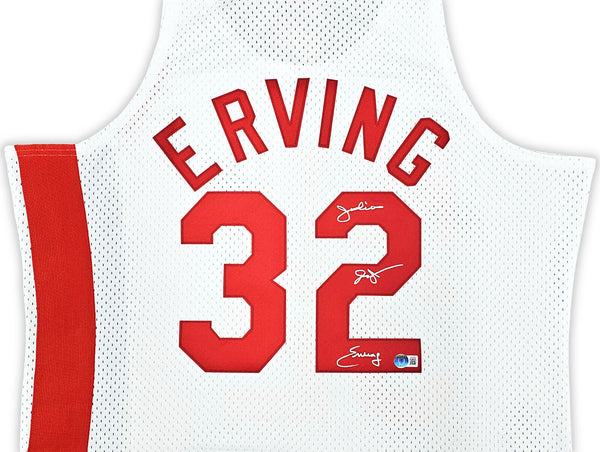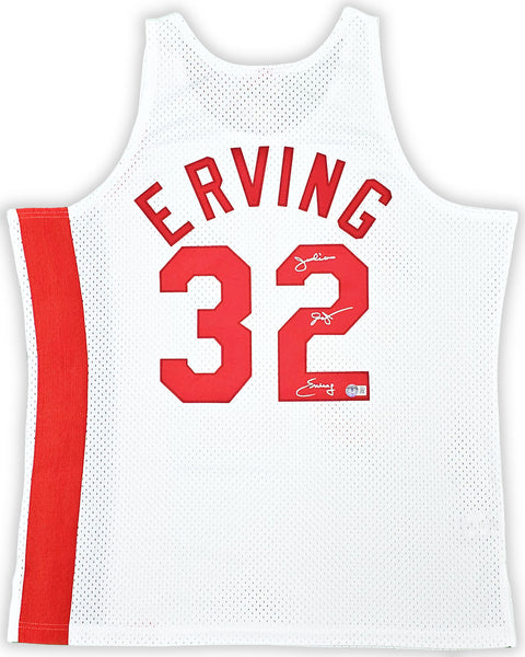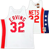 This is a White Authentic Mitchell & Ness New Jersey Nets 1973-74 HWC Swingman Jersey that has been hand signed by Julius "Dr. J" Erving. This jersey is Size XL. This item has been witnessed and certified authentic by Beckett Authentication (BAS) and comes with their tamper-proof witness sticker.