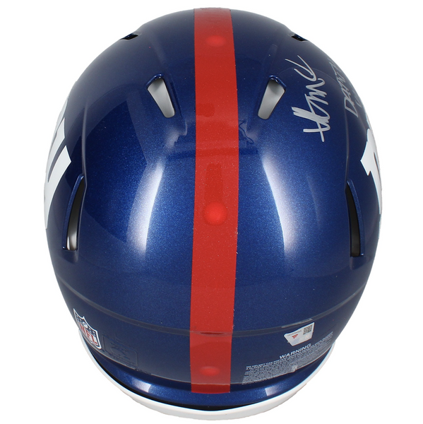 Abdul Carter Autographed / Inscribed "DARTH VADER" New York Giants Speed Authentic Helmet FanaticsThis authentic speed helmet has been personally hand-signed by Abdul Carter. It is officially licensed by the National Football League and comes with an individually numbered, tamper-evident hologram from Fanatics Authentic. To ensure authenticity, the hologram can be reviewed online. This process helps to ensure that the product purchased is authentic and eliminates any possibility of duplication or fraud. MONEY BACK GUARANTEE! If for any reason you are not completely satisfied with the quality or authenticity of your purchase, we will gladly give you a full refund or exchange, whichever you prefer up to 30 days after purchase. Please feel free to e-mail us with any questions. Authenticator Pre-Certified Authenticator: Fanatics Authenticated History of item: Carter has signed this item in the presence of a representative from Fanatics Authenticated. Describe how you came to possess this item: Super Sports Center is a fully authorized dealer for Upper Deck Authenticated as well as Mounted Memories and Steiner Sports. Other information about you and / or the item: Super Sports Center strives to deliver the most authentic in sports memorabilia from trusted companies like Mounted Memories, Steiner Sports and Upper Deck Authenticated. If it exists, we can find it for you!