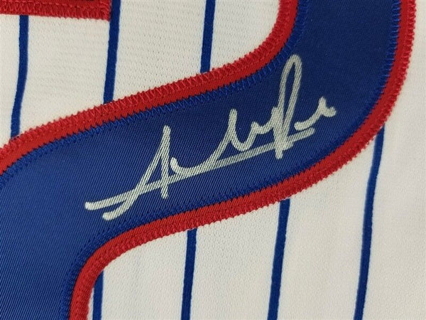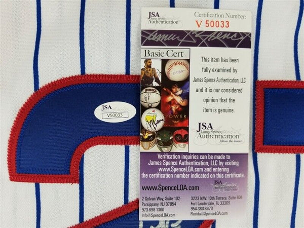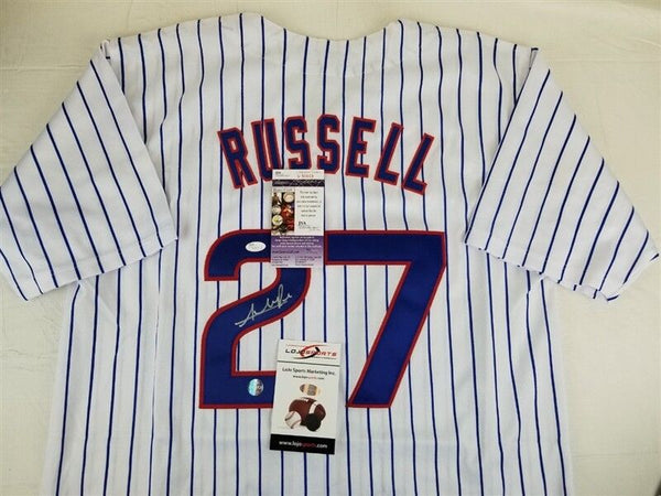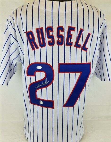 This autographed jersey has been personally hand-signed by Addison Russell of the Chicago Cubs. This autograph is certified by James Spence Authentication (JSA). It comes with the numbered hologram and matching Certificate of Authenticity. It is also certified by Lojo Sports. It comes with the numbered hologram and matching Certificate of Authenticity. Custom on-field style jerseys are a more affordable option for autograph seekers. These jerseys do not have any brand name or tags and are made in the Philippines. They feature stitched on names and numbers and are made to look very similar to the on-field jerseys that the players wear. These custom jerseys are very commonly used in the memorabilia industry.
