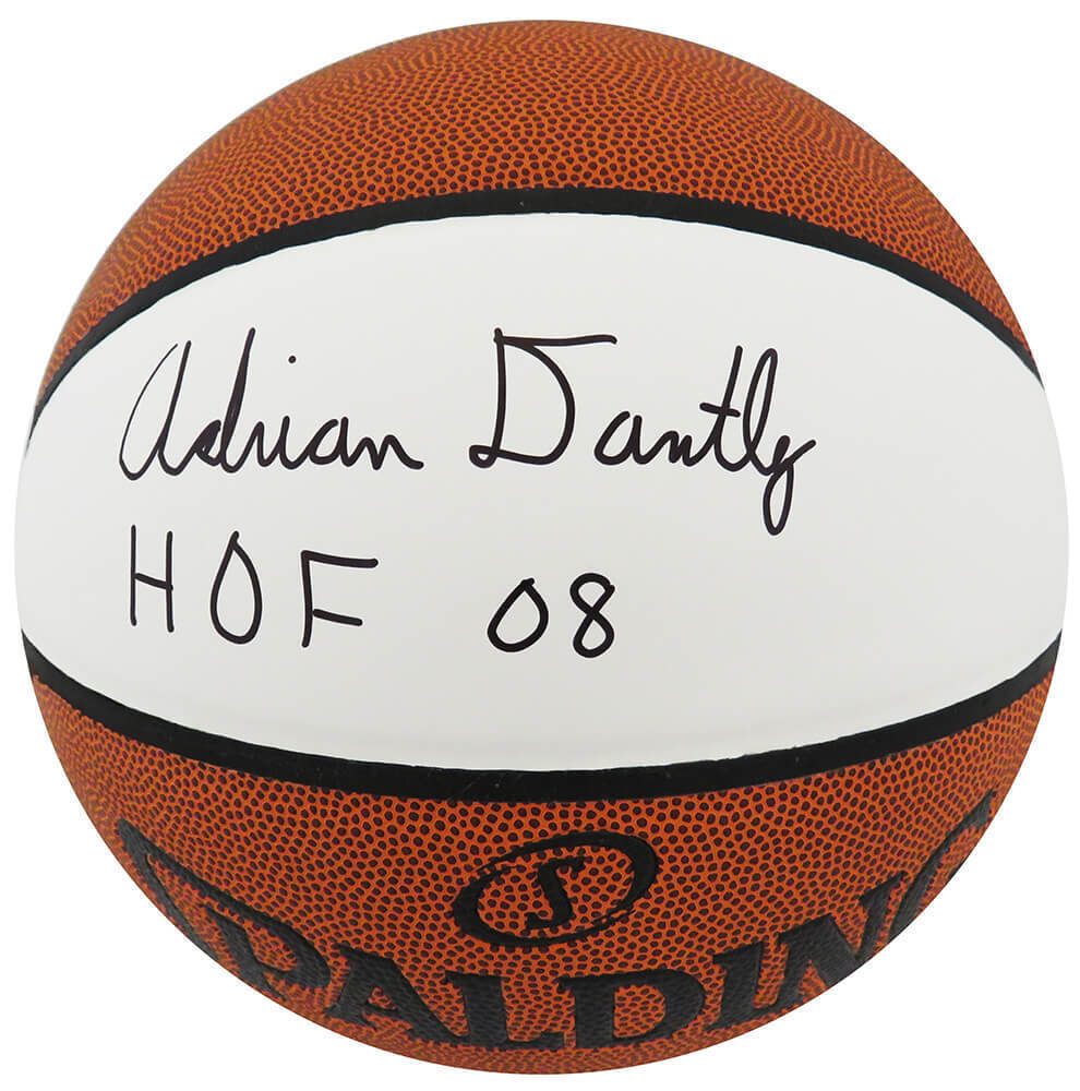 Adrian Dantley signed Spalding white panel full size basketball with 'HOF 08' inscription. Item comes with a Schwartz Sports Memorabilia tamper-proof numbered hologram and Certificate of Authenticity which can be verified online.