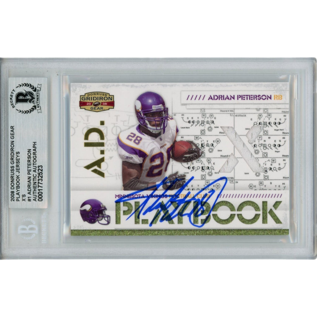 The number in the listing title is just an inventory sku for our records and is not the authentication number. The item pictured is the exact item you will receive, please see photos for condition. This is a Minnesota Vikings 2008 Donruss Gear #PL-1 Slabbed Trading Card that was personally autographed by Adrian Peterson. Includes a certificate of authenticity from Beckett Authentication Services (BAS) and Denver Autographs.FREE SHIPPING within the USA on orders over $10!