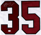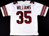 Custom on-field style jersey. Everything is sewn on, size XL. Hand-signed and inscribed in silver paint pen by Aeneas Williams (HOF). The autograph includes an official James Spence Authentication (JSA) hologram with matching COA for authenticity purposes. The signing of this item was witnessed by JSA.Authentication: JSA COA