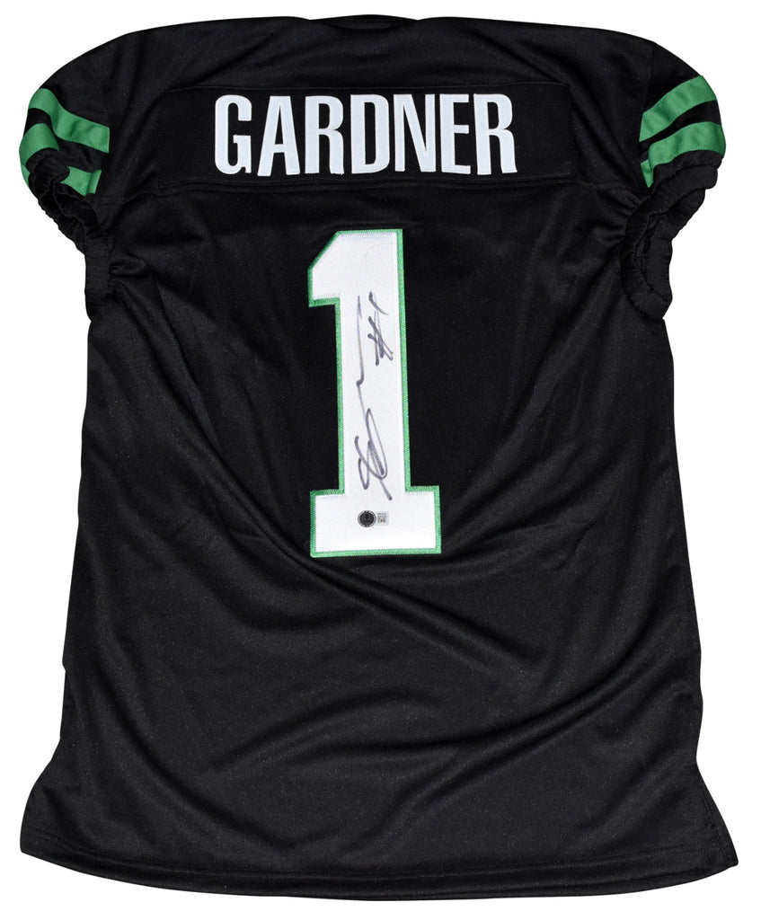 Ahmad "Sauce" Gardner, All-Pro cornerback for the New York Jets, has hand signed this black custom game cut jersey at a private signing. Jersey is size XL and all letters/numbers are sewn-on. This item is authenticated by Beckett Authentication Services and was signed in the presence of one of their representatives. Their tamper-evident hologram featuring a QR code and serial number is on the item. The authenticity can be verified online by entering the serial number or scanning the QR code. Item pictured may not be the exact item you will receive. It will be similar quality, and we guarantee your satisfaction.