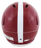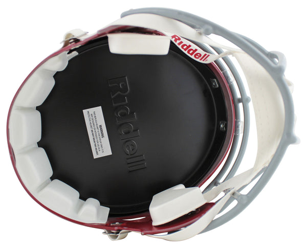 This Autographed w/ Silver Signature Full Size Speed Rep Helmet W/ Uv Mirrored Back Acrylic Display Case with the inscription of "Heisman 21" has been Personally Signed by Bryce Young of the Alabama Crimson Tide. This item is 100% Authentic to include a hologram by Beckett Authentication Services. This item will come with the new Beckett Authentication hologram that has a scannable QR code rather than the traditional COA. If you would like to have a COA, you are welcome to reach out to Beckett for a printed certification once you receive your item. This is a BAS Witnessed Protection Program item which means a Beckett Authentication Service representative was present when this item was being signed. We conducted an autograph signing with Bryce Young where multiples of the same item were signed. While the photographs are representative of this item, the size, placement and strength of the signature may vary. Each item is hand signed, therefore, each autograph is unique. This item can be verified through BAS Witnessed.