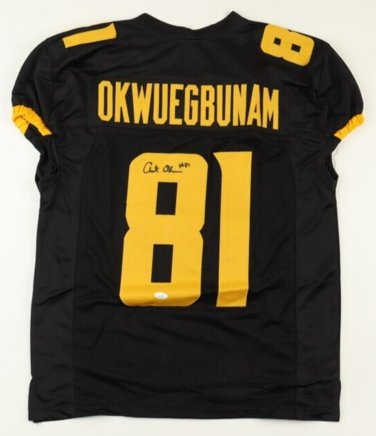 Custom on-field style jersey. Everything is sewn on, size XL. Hand-signed by Albert Okwuegbunam.The autograph includes an official James Spence Authentication (JSA) hologram and matching COA for authenticity purposes. The signing of this item was witnessed by JSA.Authentication: JSA COA