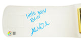 This is a Blue & Gold WWE Belt that has been hand signed by Alexa Bliss. This item was inscribed "Little Miss Bliss." This item has been witnessed and certified authentic by Beckett Authentication (BAS) and comes with their tamper-proof witness sticker. Beckett Authentication has recently changed their physical certificate card policy where they no longer match their tamper-proof sticker with a physical certificate. A certificate can be printed on Beckett's website for the matching authentication number.