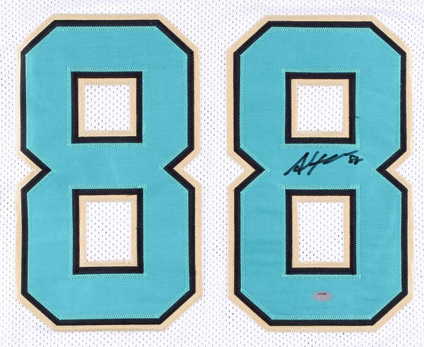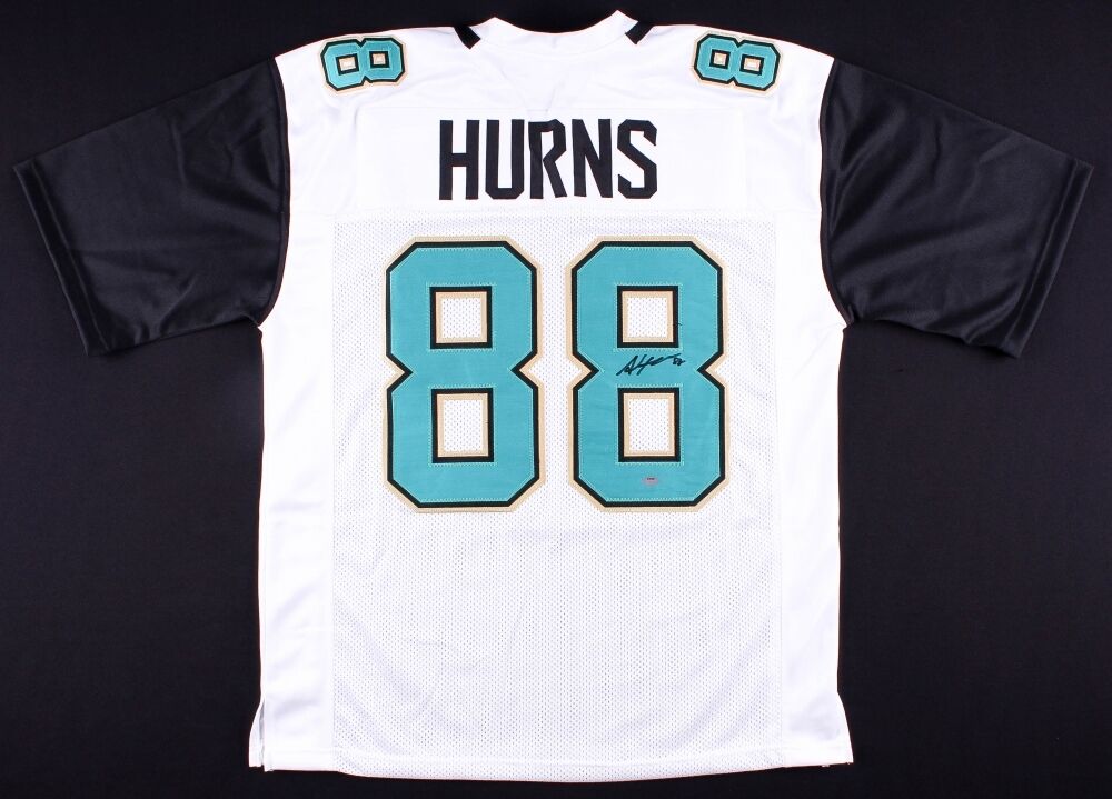 Custom on-field style jersey. Everything sewn on, size XL. Hand-signed in black felt tip pen by Alan Hurns (Jacksonville Jaguars). The autograph includes an official Schwartz Sports Hologram and matching COA for authenticity purposes.Authentication: Schwartz Sports COA