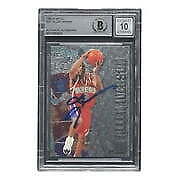Featured is an Allen Iverson signed 1996 Metal #201 Philadelphia 76ers rookie card. This card has been hand signed by Iverson and has been authenticated and encapsulated by Beckett, receiving an autograph grade of 10. This card would make a great addition to any sports memorabilia collection!. SPECIFICATIONS Autographed By: Allen Iverson Team: Philadelphia 76ers Sport: Basketball Authentication: Beckett Grading Services