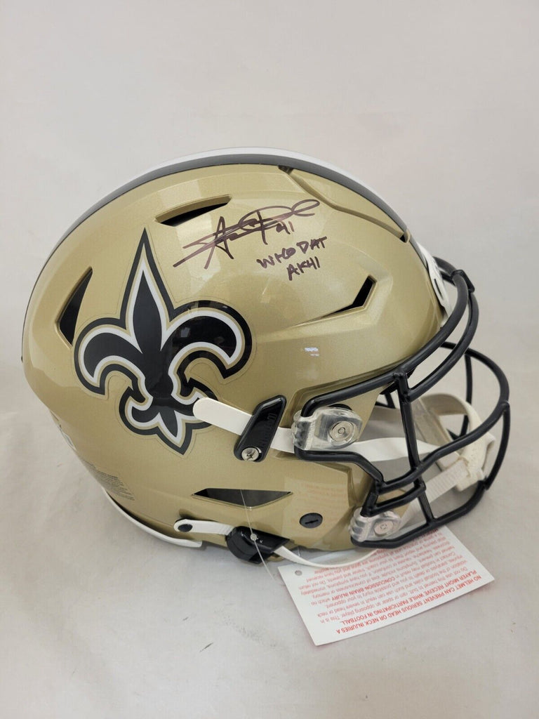 ALVIN KAMARA AUTOGRAPHED / SIGNED NEW ORLEANS SAINTS FULL SIZE SPEEDFLEX AUTHENTIC HELMET"WHO DAT""AK41"INSCRIPTIONSBECKETT QR CODE HOLOGRAM COA