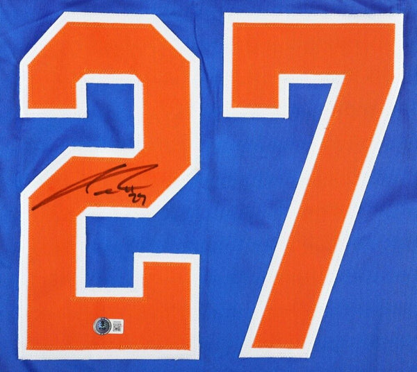 Custom on-ice style jersey everything sewn on, size XL. Hand-signed by Anders Lee.The autograph includes an official Beckett Authentication Services serially numbered hologram with QR Code Card for authenticity purposes. The signing of this item was witnessed by Beckett.Authentication: Beckett Hologram with QR Code Card