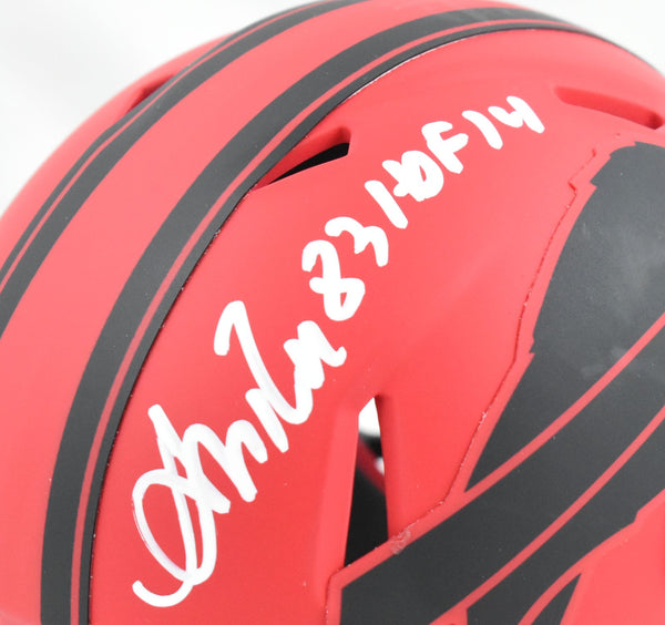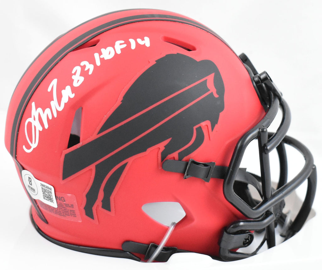 This is a hand autograph of Andre Reed of the Buffalo Bills on a Riddell Football Rave Speed Mini Helmet. This item has a Beckett Witnessed Authentication, which comes with a numbered hologram and a QR code for verification. You can view this item on the Beckett Authentication website and it shows when and where the item was signed. It was signed either at a public autograph appearance or a private signing. This is a stock photo of the item. Although you may not receive this exact item, the item you receive is virtually identical and brand new in great shape. This is a hand autograph of Andre Reed of the Buffalo Bills on a Riddell Football Rave Speed Mini Helmet. This item has a Beckett Witnessed Authentication, which comes with a numbered hologram and a QR code for verification. You can view this item on the Beckett Authentication website and it shows when and where the item was signed. It was signed either at a public autograph appearance or a private signing. This is a stock photo of the item. Although you may not receive this exact item, the item you receive is virtually identical and brand new in great shape.