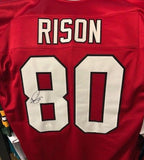 Custom on-field style jersey. Everything is sewn on, size XL. Hand-signed in black felt-tip pen by Andre Rison. The lot / autograph(s) includes an official James Spence Authentication (JSA) hologram and matching COA for authenticity purposes. The signing of this item was witnessed by JSA.Authentication: JSA COA