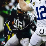 Andrew luck hand autographed 16 x 20 "12" photograph - panini authenticated - limited edition 1 of 25 #12 is the undoubted leader of the indianapolis colts franchise. when andrew luck began his career in 2012, he immediately cemented himself as a star player as he went 11-5 in each of his first 3 seasons while being selected to the pro bowl in each of those years. luck is one of the most talented passers in the nfl today and looks to fight for the lombardi trophy with a string of new talented players around him. commemorate the leader of the colts with this autographed 16x20 photograph! this andrew luck autographed photograph includes a panini authentic certificate of authenticity with a unique hologram number that corresponds to the hologram on the actual image. these holograms protect the integrity of the product and serve to guarantee the authenticity of the signature it bears.winning bidder will receive number "1" from the edition.